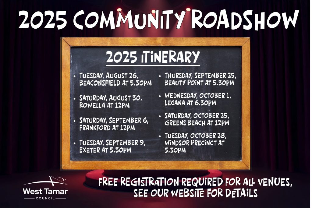RSVP: https://events.humanitix.com/2025-west-tamar-council-community-roadshow-legana